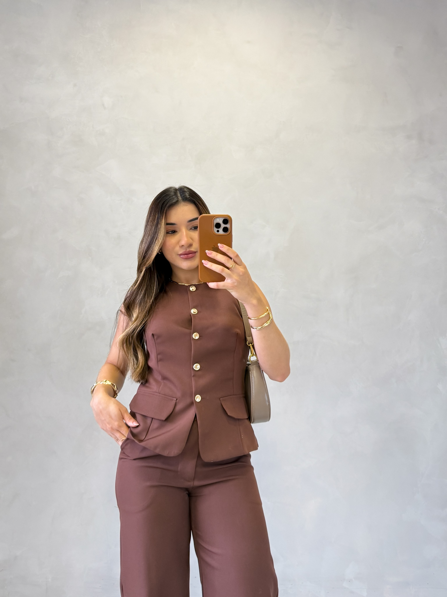 Características:  shape slim reto, possui botão interno de fechamento além dos botões frontais.