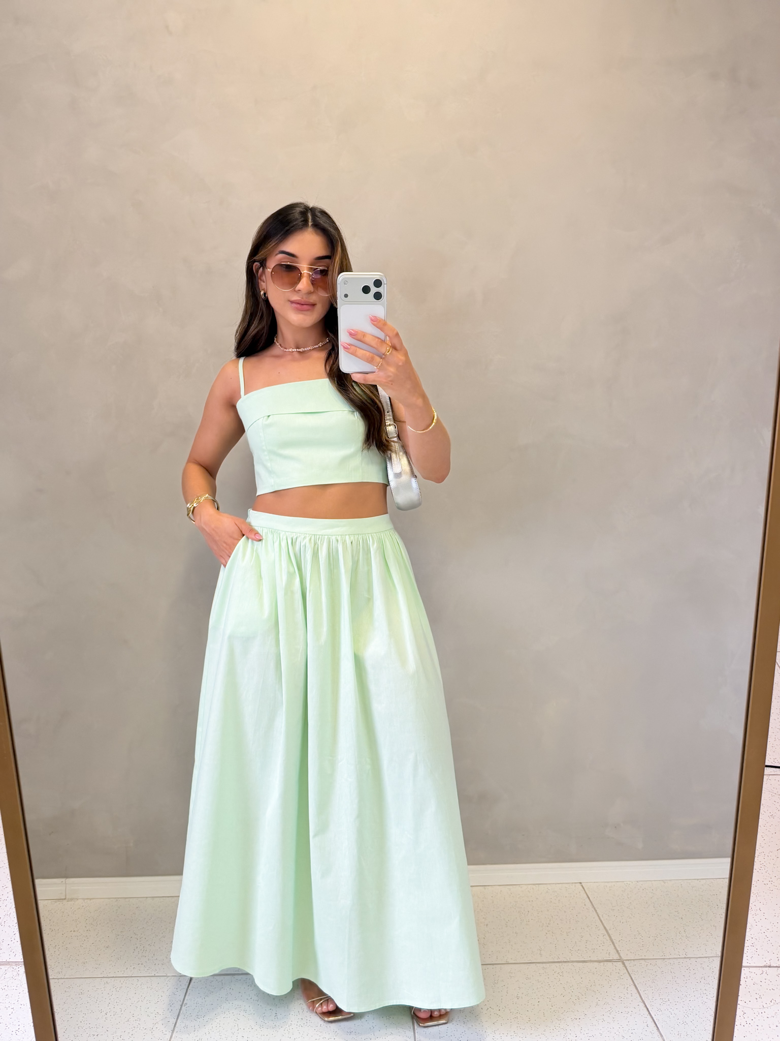 A modelo veste P