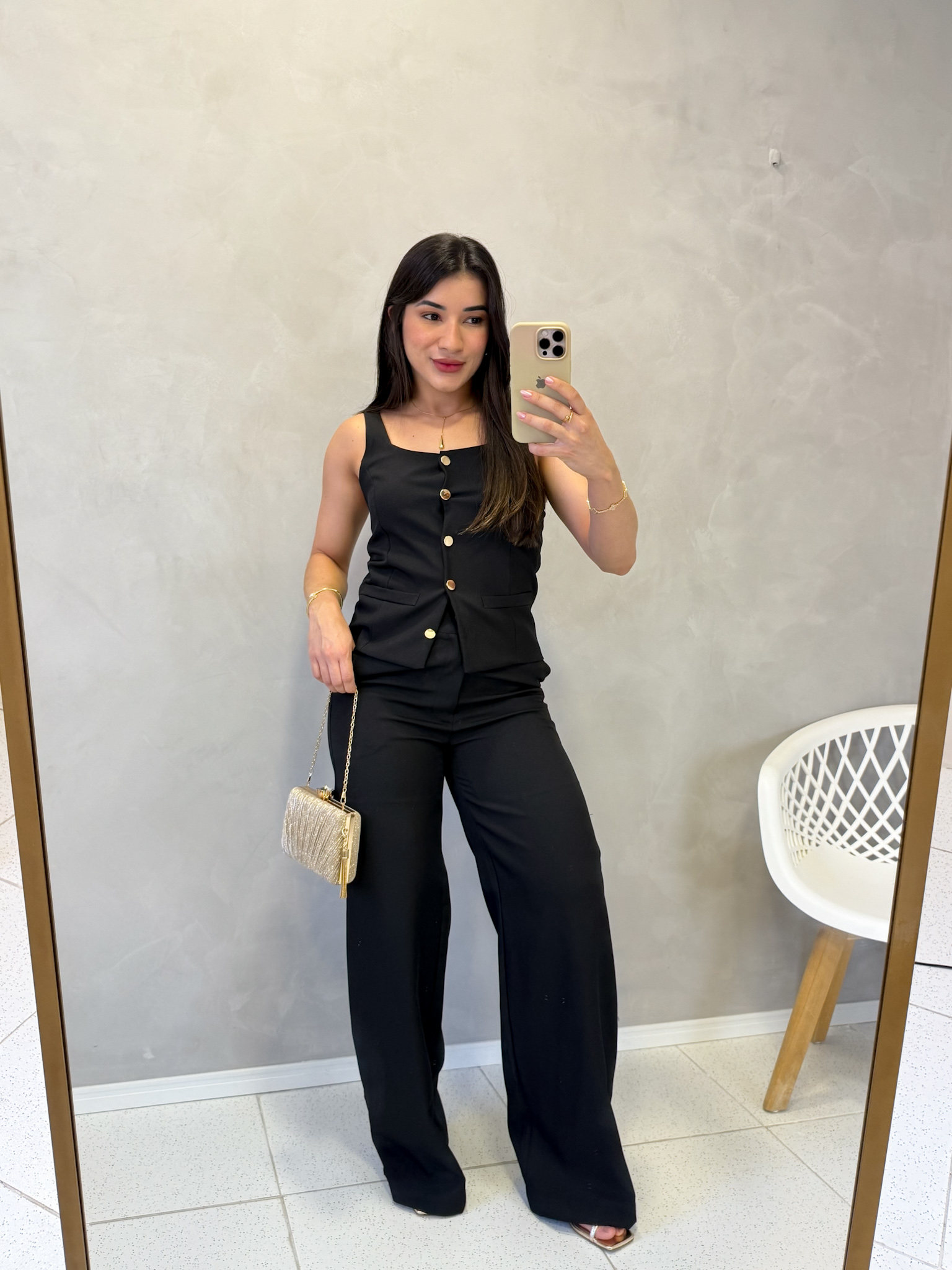 Características: modelagem calça reta alongada, fechamento botão e zíper frontal centralizado.