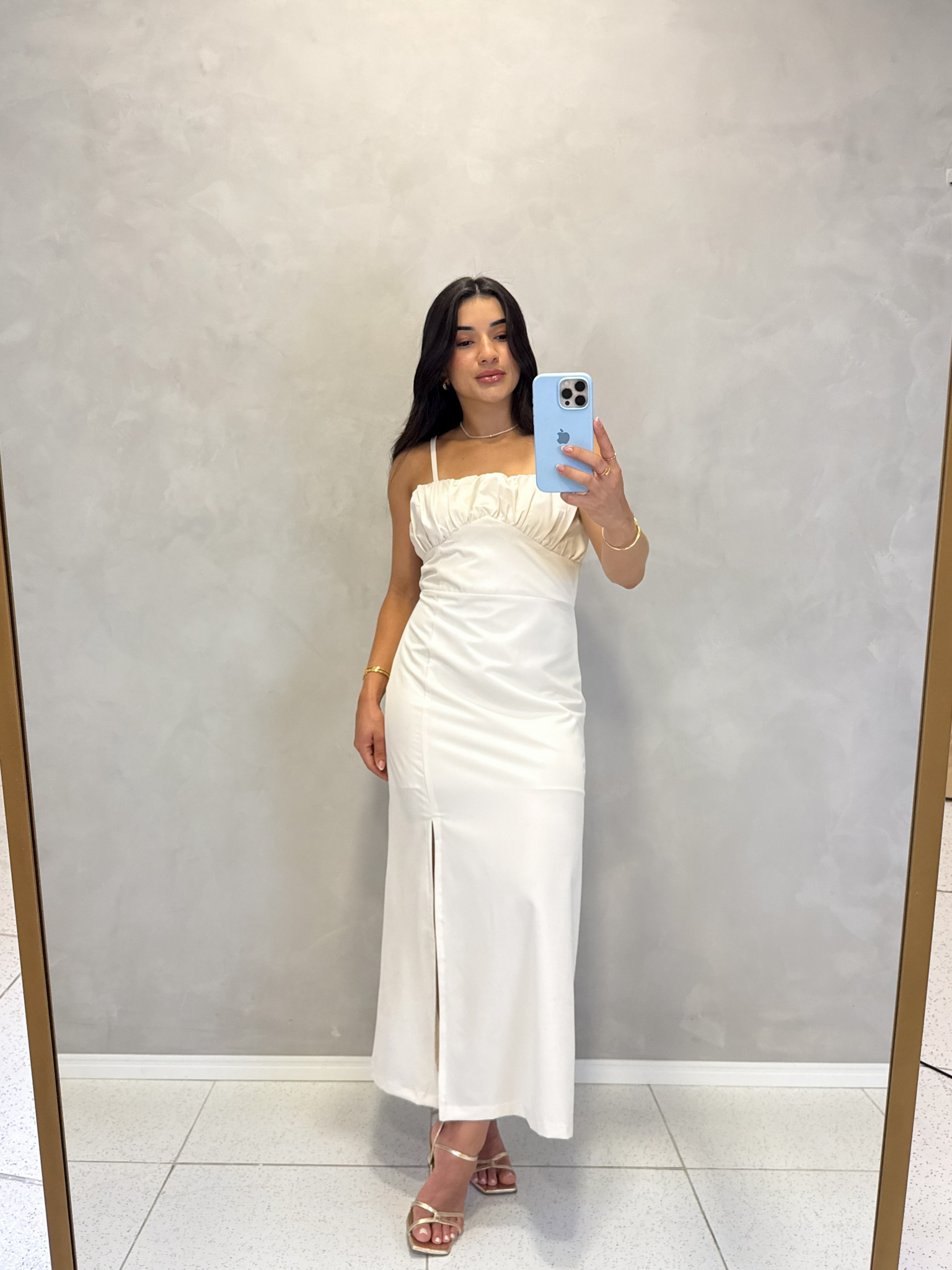 Características : fechamento em zíper invisível nas costas, alças reguláveis.